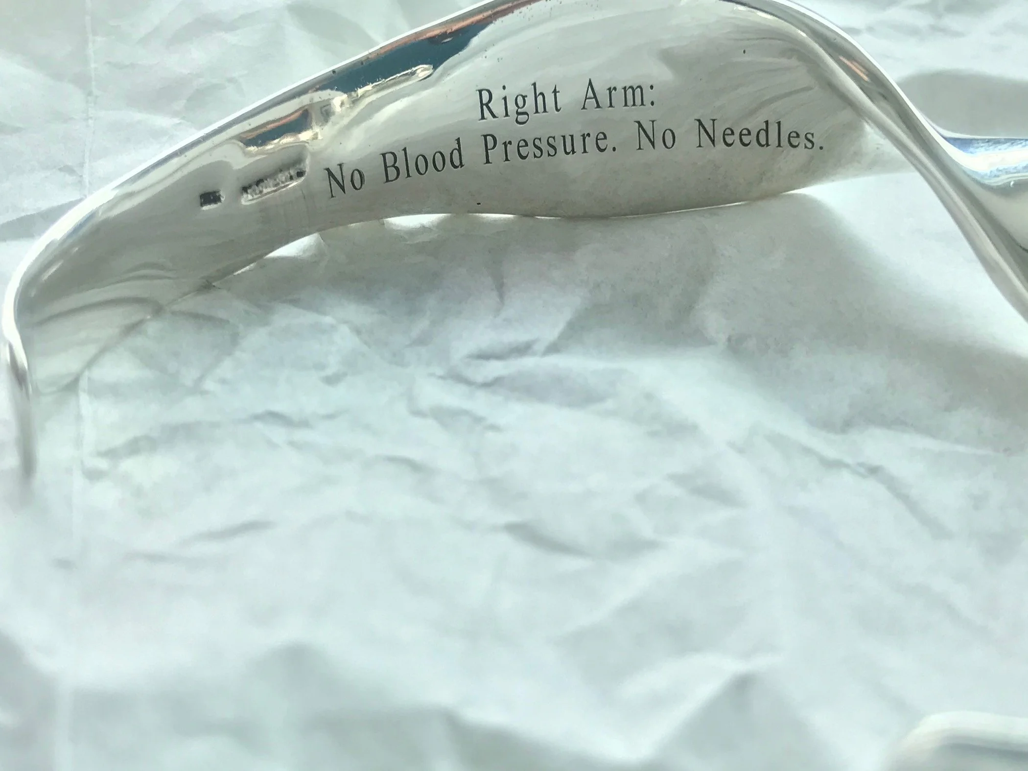 A medical ID bracelet can provide essential medical information about a person's breast cancer treatment history, such as the type of surgery, radiation therapy, or chemotherapy they have received. This information can be crucial in the event of an emergency, as it can help medical professionals provide appropriate treatment quickly.